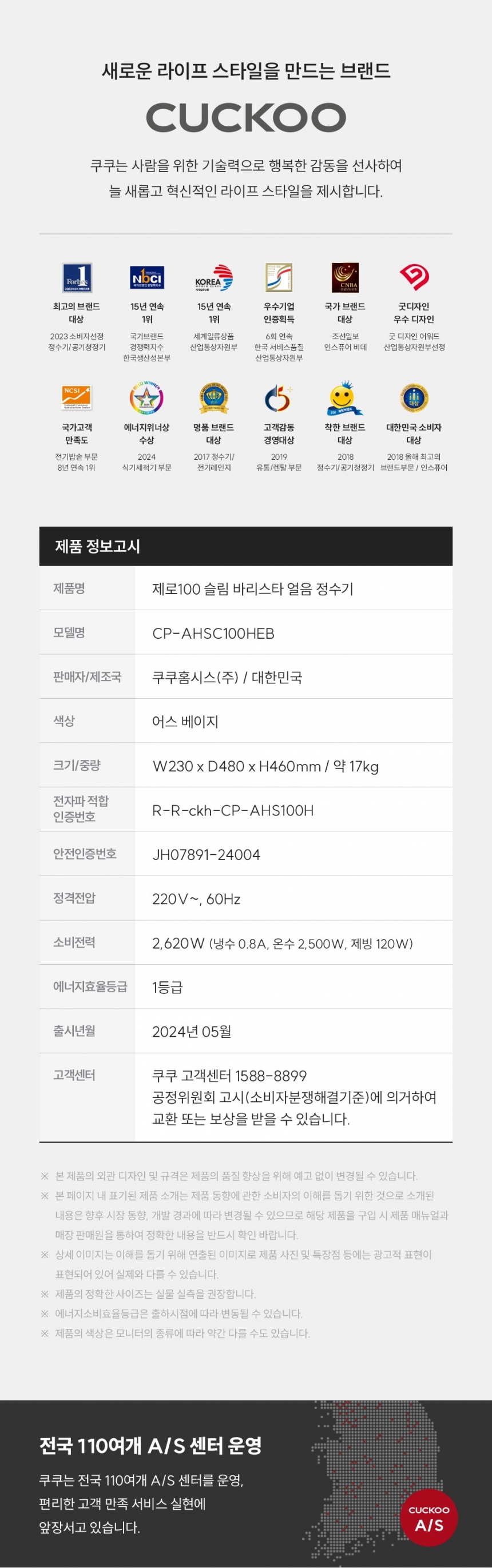 쿠쿠 제로 100 슬림 얼음 바리스타 정수기 (4개월 방문관리)