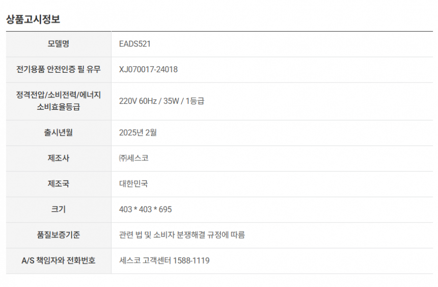 모델명 : EADS521_2